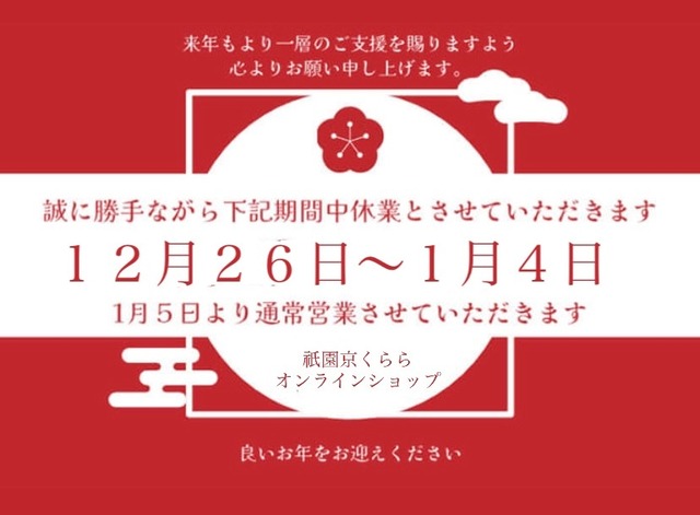 誠に勝手ながら下記の期間を年末年始休業期間とさせて頂きます。 【 12月26日〜2026年1月4日 】 12月26日から休業期間中にいただきましたご注文、お問い合わせメール等に関しましては、2026年1月5日以降順次対応させていただきます! 休み明けの発送は込み合う場合もございますのでご理解頂けましたら幸いです。何卒宜しくお願い致します。
